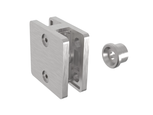 EBN / UCHWYT SZKŁA / MODEL 21 / PRZYŁĄCZ PŁASKI / 45X45 / AISI 316 / SATYNA / DLA SZKŁA 6 – 10,76