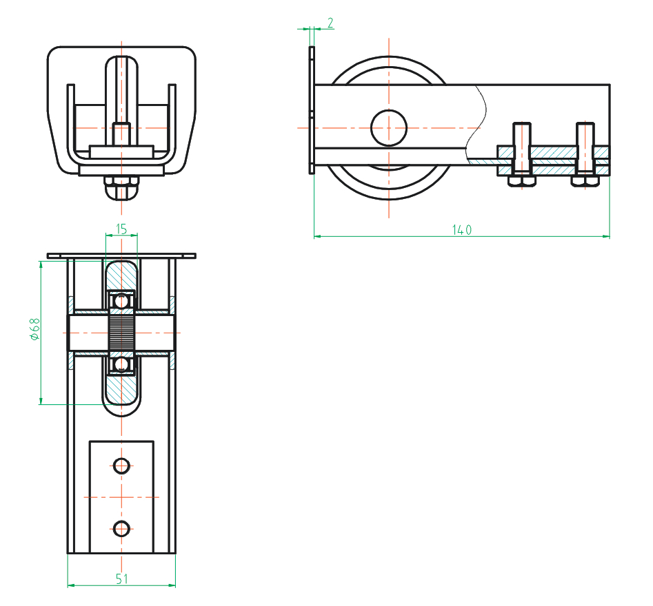 ROLKA NAJAZDOWA DO BRAM SAMONOŚNYCH DLA PROFILU 70X60mm DŁUGOŚĆ 144mm – STAL OCYNKOWANA