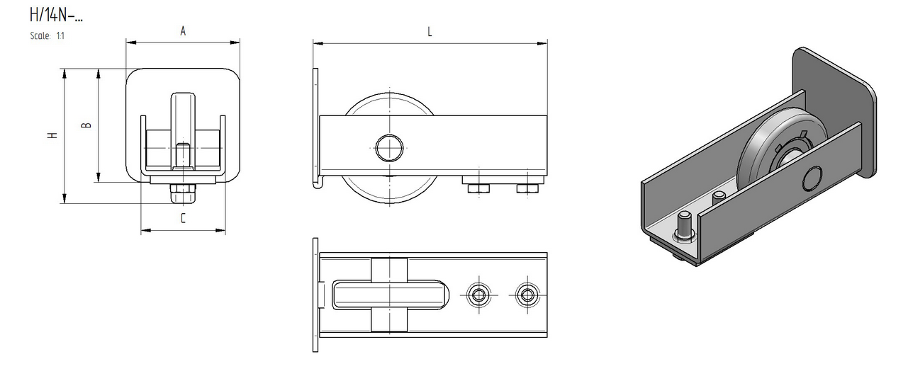 ROLKA NAJAZDOWA DO BRAM SAMONOŚNYCH DLA PROFILU 76X76mm DŁUGOŚĆ 149mm – STAL OCYNKOWANA
