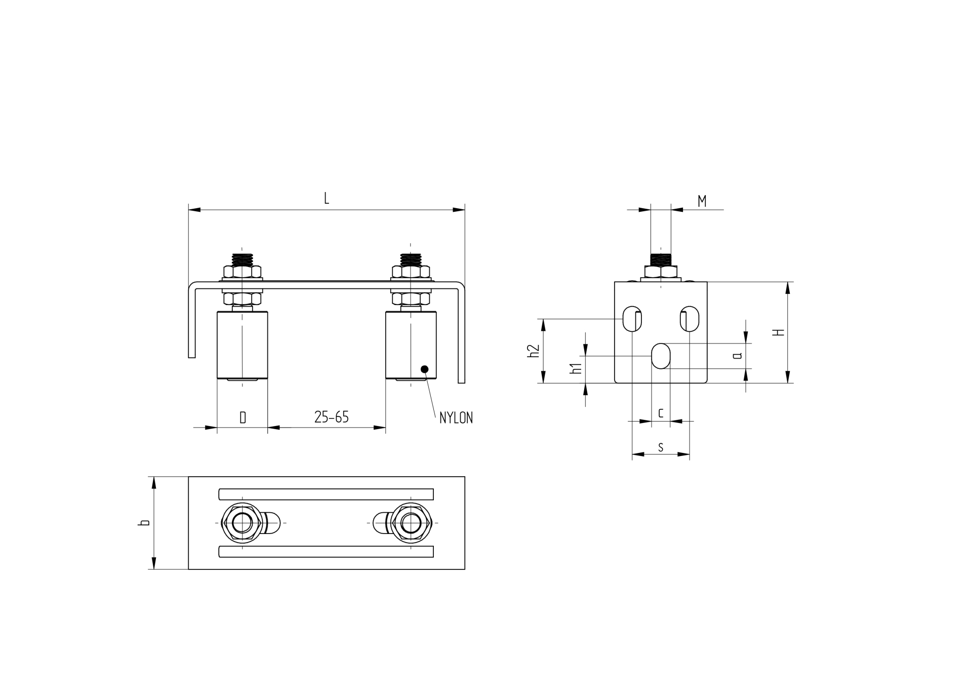 Materiał: Stal nierdzewna AISI 304, Wykończenie powierzchni: Naturalny, L: 164, M: 12, s: 34, a: 15, b: 57, c: 11, D: 30, H: 60, h1: 14, h2: 36