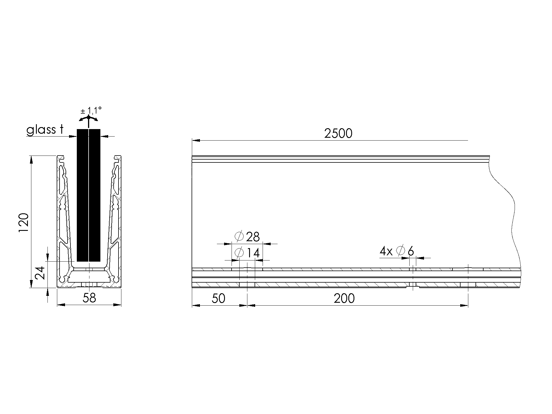 - Listwa umożliwia regulację pochylenia szkła aż o 1.1°;