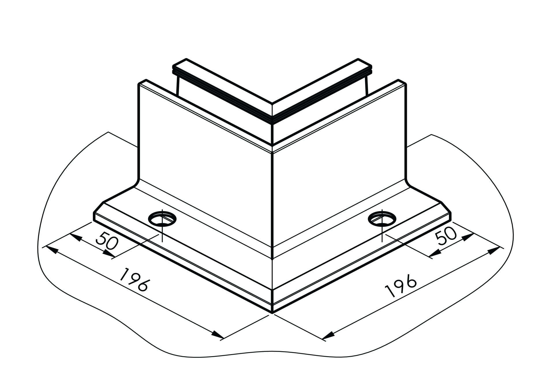NAROŻNIK ALUMINIOWY DO PROFILU BALUSTRADY SZKLANEJ L195MM SZKŁO:12 – 21.52 – SZLIFOWANE ALUMINIUM