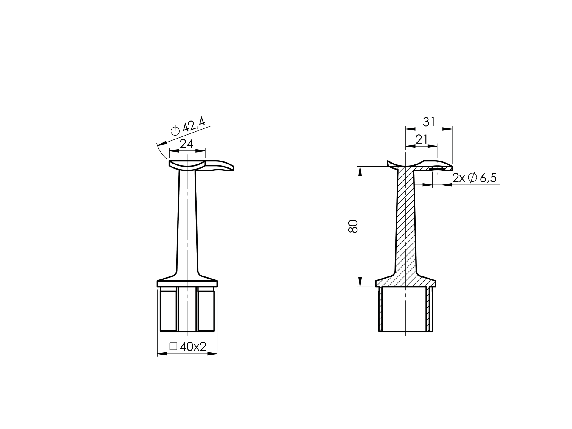 - Podpora poręczy do wklejenia na słupek kwadratowy