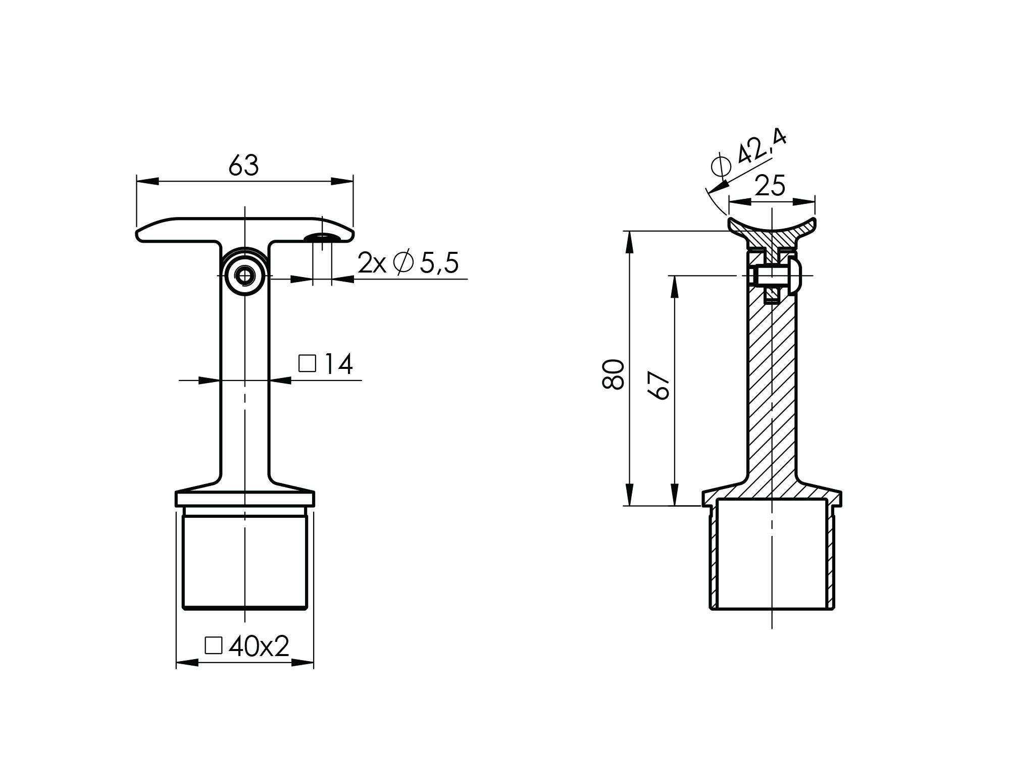 - Podpora poręczy do wklejenia na słupek kwadratowy