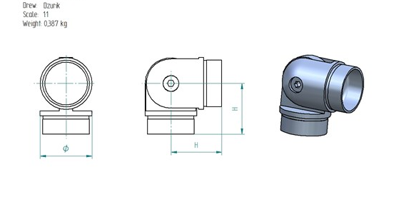 KOLANKO PRZEGUBOWE DO BALUSTRADY NIERDZEWNEJ – OD 0° DO 90° FI 42.4×2 mm – STAL KWASOODPORNA AISI 316