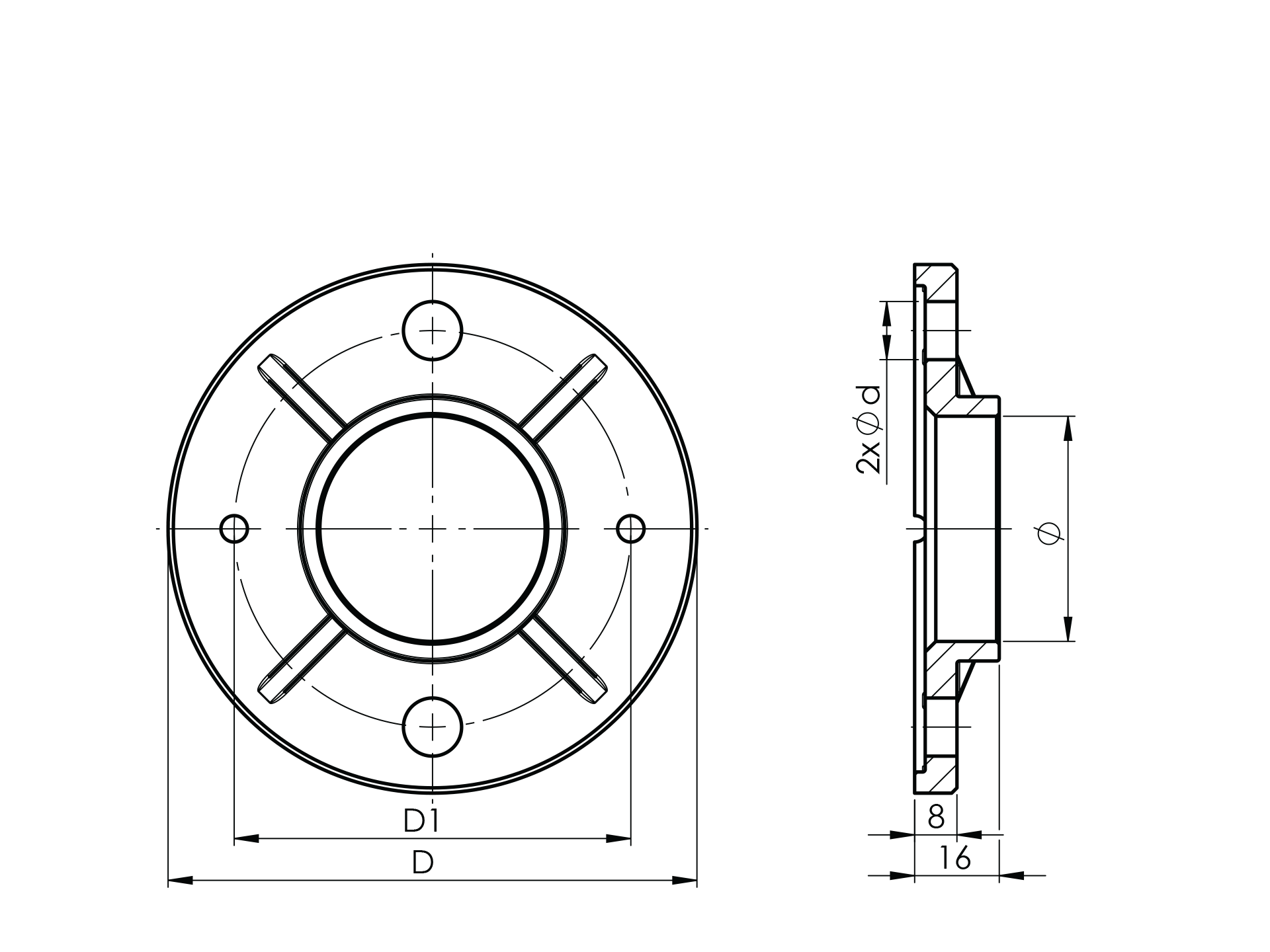 STOPA MONTAŻOWA Z OTWOREM Fi42.4 mm DO BALUSTRADY NIERDZEWNEJ – STAL KWASOODPORNA AISI 316