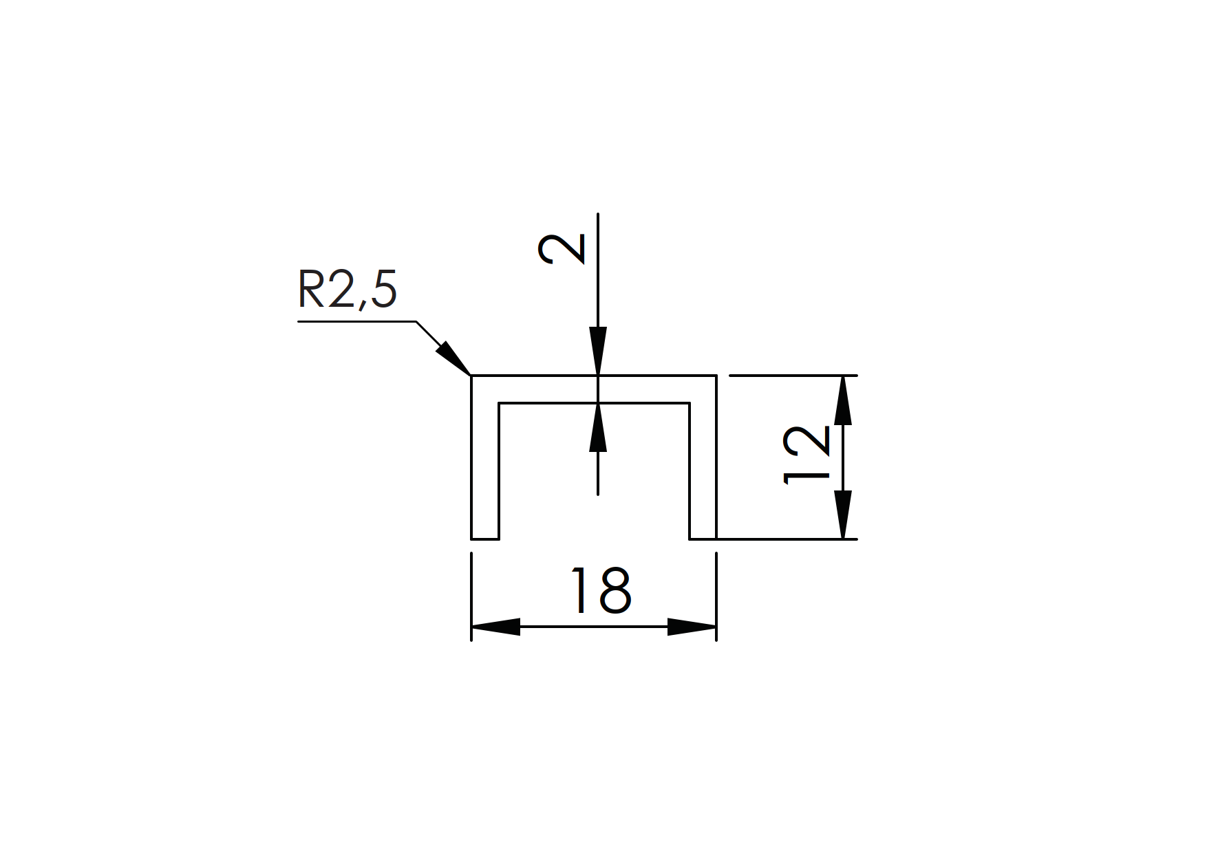 Materiał: Aluminium, Wykończenie powierzchni: Satin-ELOX, szkło t: 12-13,52, Kolor: czarna, L: 200, Efekt: Black ELOX, Mocowanie: Od szkła, LED: Nie, D: 18, H: 12, R: 1, t: 2