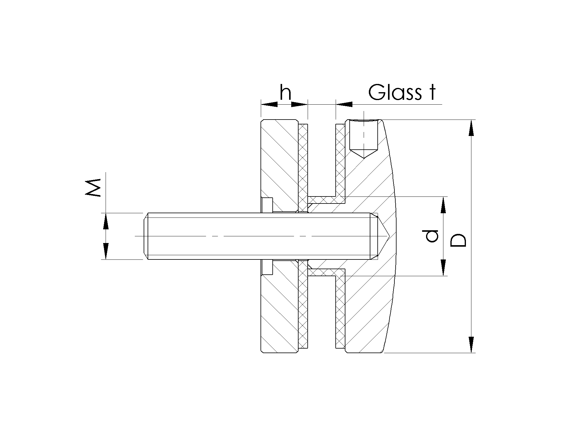 Materiał: Stal nierdzewna AISI 316, Wykończenie powierzchni: Szlifowany, szkło t: 8-17,52, Wypełnienie: Szkło, Słupek: 40x40x2, Model: Model 47, Phi: flat, h: 10, M: 10×45, D: 50, d: 17, Otwor w szkle: 20