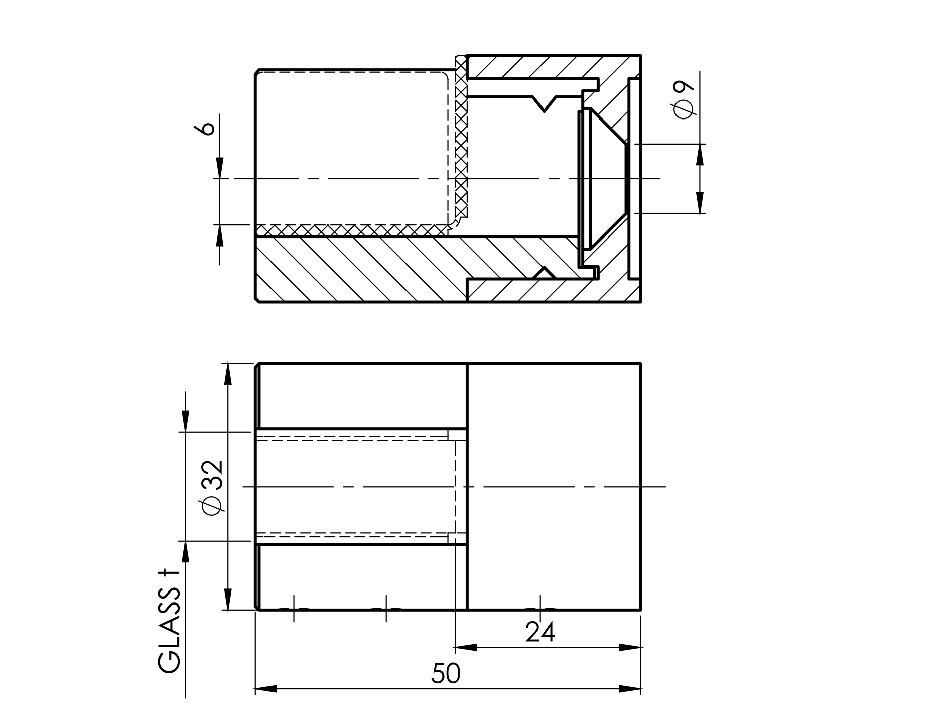 EBN / UCHWYT SZKŁA / CYLINDER / PRZYŁĄCZ PŁASKI / 50X32 / AISI 316 / SATYNA / DLA SZKŁA 8 – 12,76
