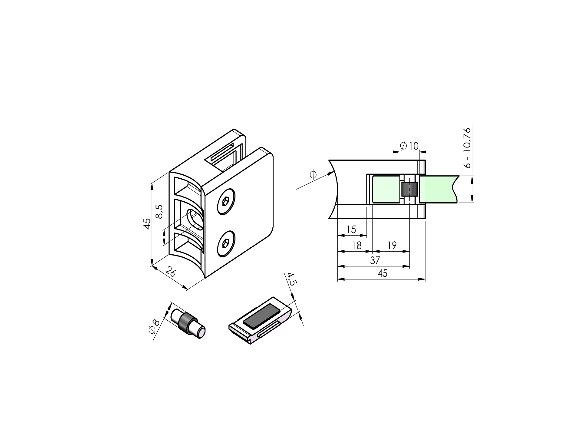 - Uchwyt pasuje do różnych grubości szkła, co sprawia, że jest wszechstronny i łatwy do dopasowania do różnych projektów i aplikacji.