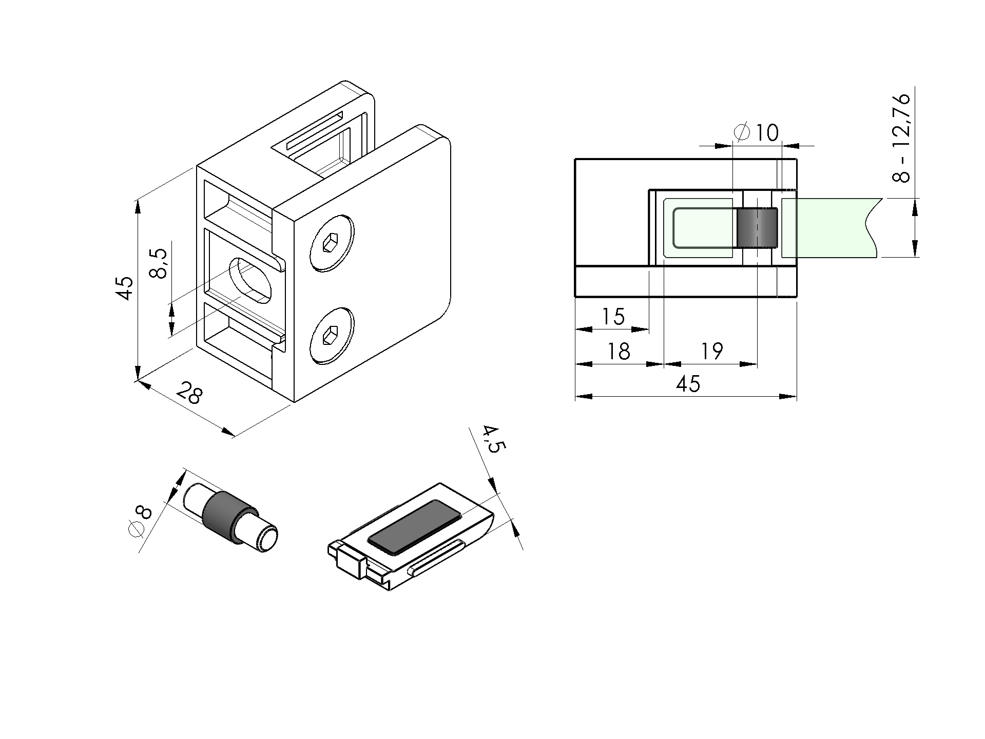 - Uchwyt pasuje do różnych grubości szkła, co sprawia, że jest wszechstronny i łatwy do dopasowania do różnych projektów i aplikacji.
