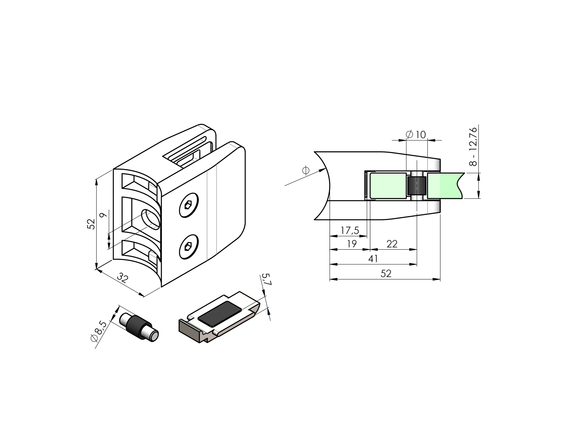 - Uchwyt pasuje do różnych grubości szkła, co sprawia, że jest wszechstronny i łatwy do dopasowania do różnych projektów i aplikacji.