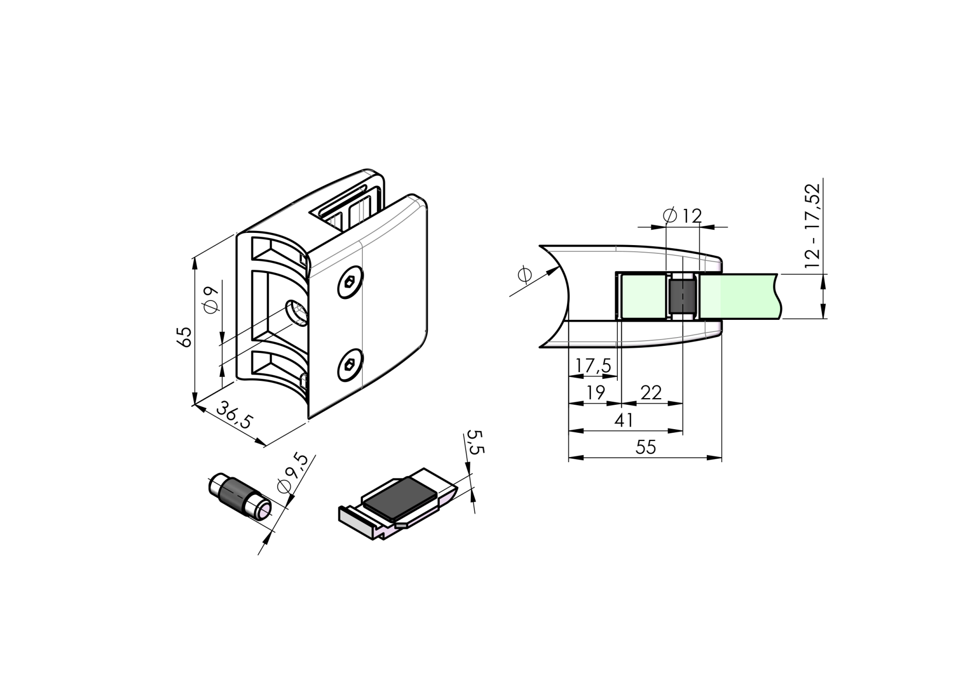 - Między 12 mm a 17,52 mm. Uchwyt jest przystosowany do łączenia i mocowania szkła o różnych grubościach w tym zakresie.