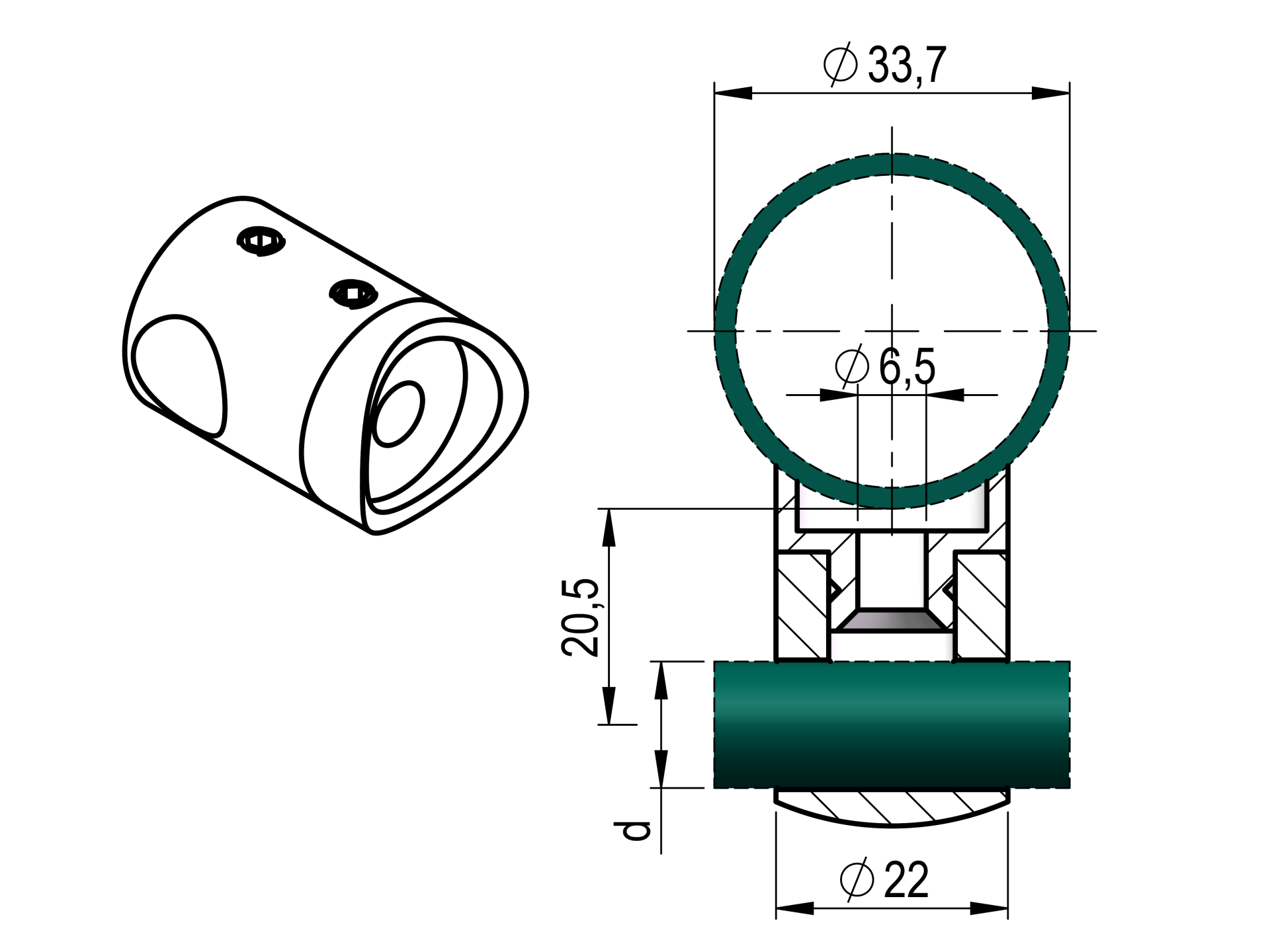 UCHWYT WYPEŁNIEŃ PRZELOTOWY PRZYŁĄCZ FI33.7 WYPEŁNIENIE FI 10 – STAL NIERDZEWNA AISI 304