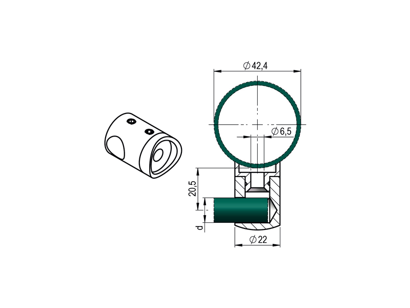 UCHWYT WYPEŁNIENIA KOŃCOWY LEWY PRZYŁĄCZ FI 42.4 WYPEŁNIENIE FI 10 – STAL NIERDZEWNA AISI 304