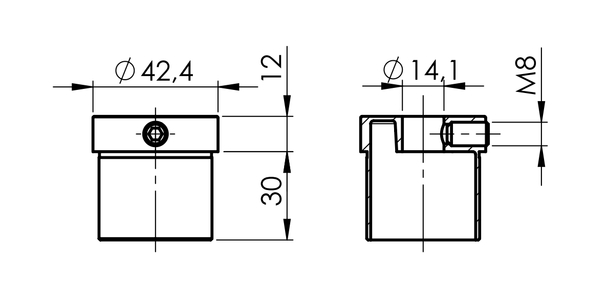 ZAŚLEPKA DO RURY Z GWINTEM CENTRALNYM M14 FI 42 AISI 304 SATYNA