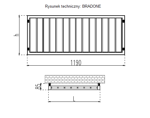 Model: Bradone; Marka: Rapdach; Wysokość: 58cm; Szerokość: 119cm; Rozstaw przyłączy: 50; Moc cieplna: 1075W; Pojemność: 8.4l; Waga: 18.8kg; Kolor: Czarny;