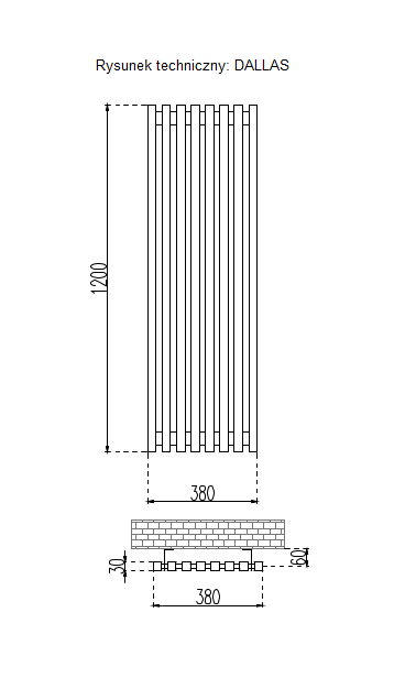 Model: Dallas; Marka: Rapdach; Wysokość: 120cm; Szerokość: 38cm; Rozstaw przyłączy: 50mm; Moc cieplna: 716W; Pojemność: 14.4l; Waga: 23.18kg; Kolor: Złoty;