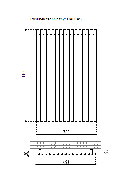 Model: Dallas; Marka: Rapdach; Wysokość: 140cm; Szerokość: 78cm; Rozstaw przyłączy: 50mm; Moc cieplna: 1671W; Pojemność: 33.6l; Waga: 54.05kg; Kolor: Czarny;