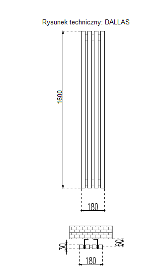 Model: Dallas; Marka: Rapdach; Wysokość: 160cm; Szerokość: 18cm; Rozstaw przyłączy: 50mm; Moc cieplna: 477W; Pojemność: 9.6l; Waga: 15.4kg; Kolor: Złoty;