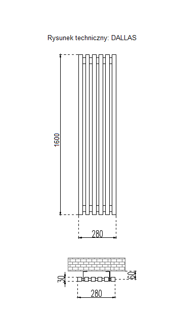 Model: Dallas; Marka: Rapdach; Wysokość: 160cm; Szerokość: 28cm; Rozstaw przyłączy: 50mm; Moc cieplna: 716W; Pojemność: 14.4l; Waga: 23.11kg; Kolor: Czarny;
