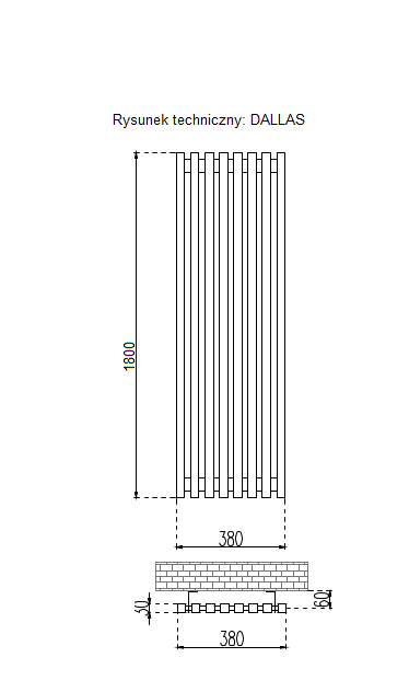 Model: Dallas; Marka: Rapdach; Wysokość: 180cm; Szerokość: 38cm; Rozstaw przyłączy: 50mm; Moc cieplna: 1074W; Pojemność: 21.6l; Waga: 34.65kg; Kolor: Złoty;