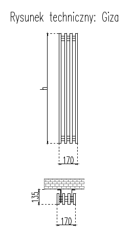 Model: Giza; Marka: Rapdach; Wysokość: 160cm; Szerokość: 17cm; Rozstaw przyłączy: 50mm; Moc cieplna: 815W; Pojemność: 10l; Waga: 23.6kg; Kolor: Czarny;