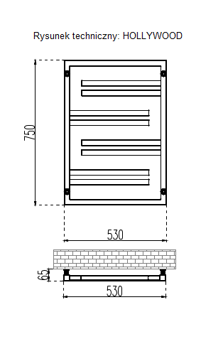 Model: Hollywood; Marka: Rapdach; Wysokość: 75cm; Szerokość: 53cm; Rozstaw przyłączy: 50/500mm; Moc cieplna: 371W; Pojemność: 3.15l; Waga: 7.9kg; Kolor: Złoty;