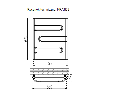 Model: Krates; Marka: Rapdach; Wysokość: 67cm; Szerokość: 54cm; Rozstaw przyłączy: 500mm; Moc cieplna: 270W; Pojemność: 2.3l; Waga: 5.6kg; Kolor: Złoty;