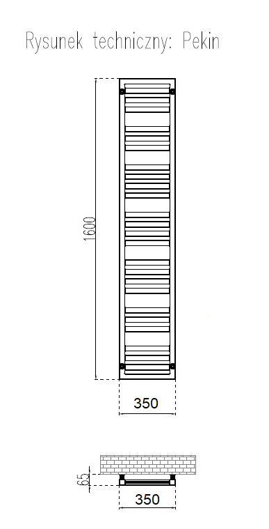 Model: Pekin; Marka: Rapdach; Wysokość: 160cm; Szerokość:35cm; Rozstaw przyłączy: 50mm; Moc cieplna: 603W; Pojemność: 4.1l; Waga: 12.2kg; Kolor: Złoty;