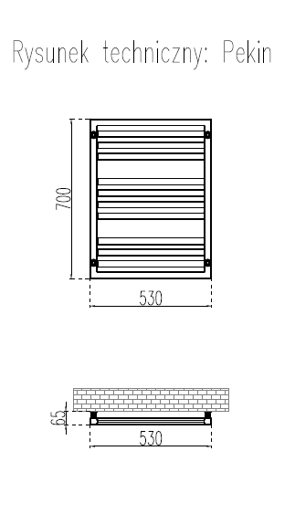 Model: Pekin; Marka: Rapdach; Wysokość: 70cm; Szerokość: 53cm; Rozstaw przyłączy: 50 lub 500mm; Moc cieplna: 398W; Pojemność: 2.7l; Waga: 8.2kg; Kolor: Czarny;
