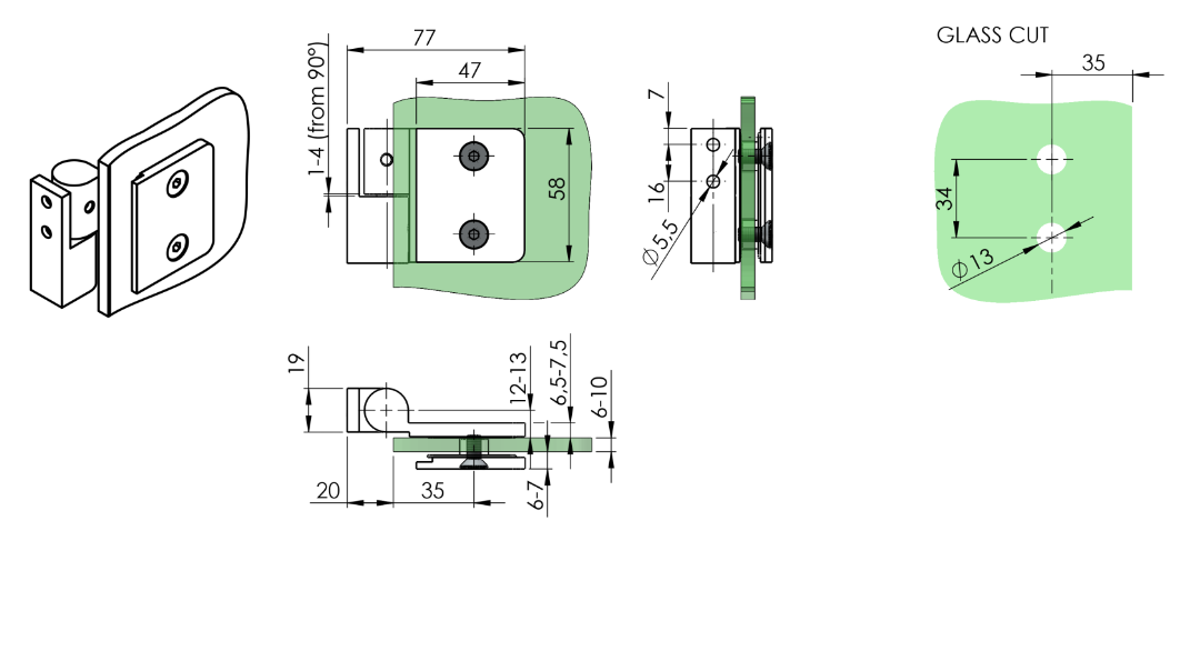 ZAWIAS DO KABINY PRYSZNICOWEJ DLA SZKŁA 6-10MM POLER – MOSIĄDZ