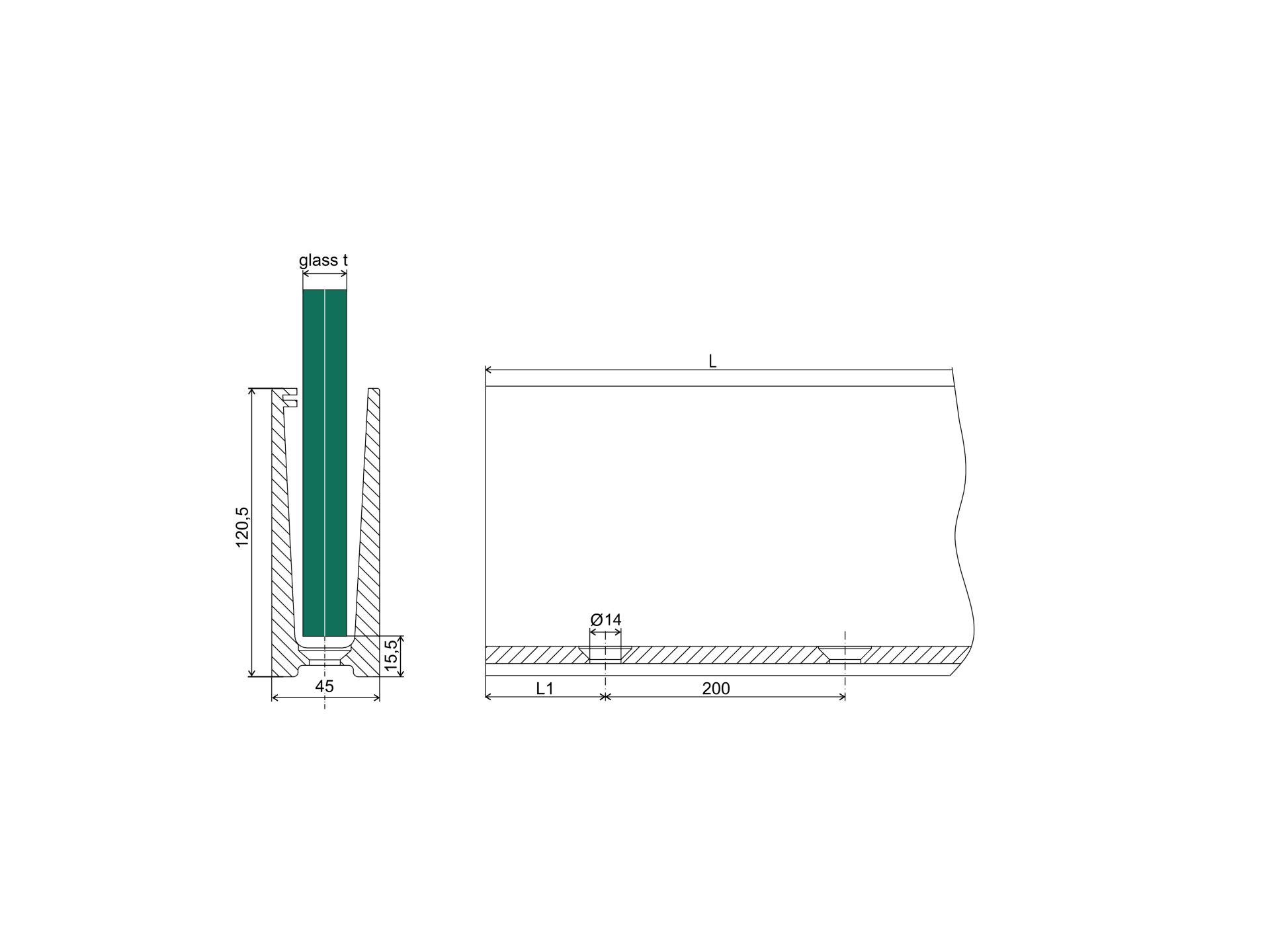 SZYNA ALUMINIOWA TYP U DLA SZKŁA 12.00-21.52 SATYNA ELOX 1250MM